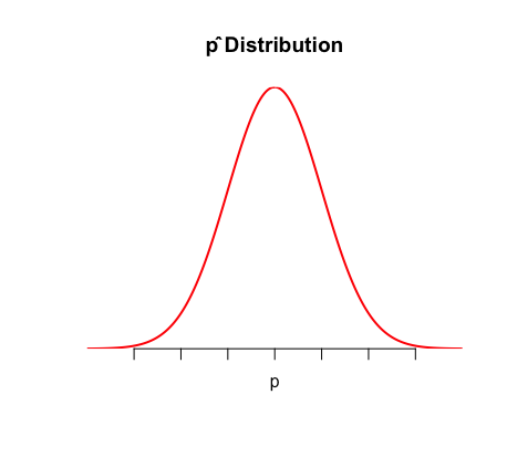Recall that p̂ ~ N (p, \(\sqrt {pq\over n}\)). This means that the distribution is centered around p, the population proportion, and is hence unbiased.
